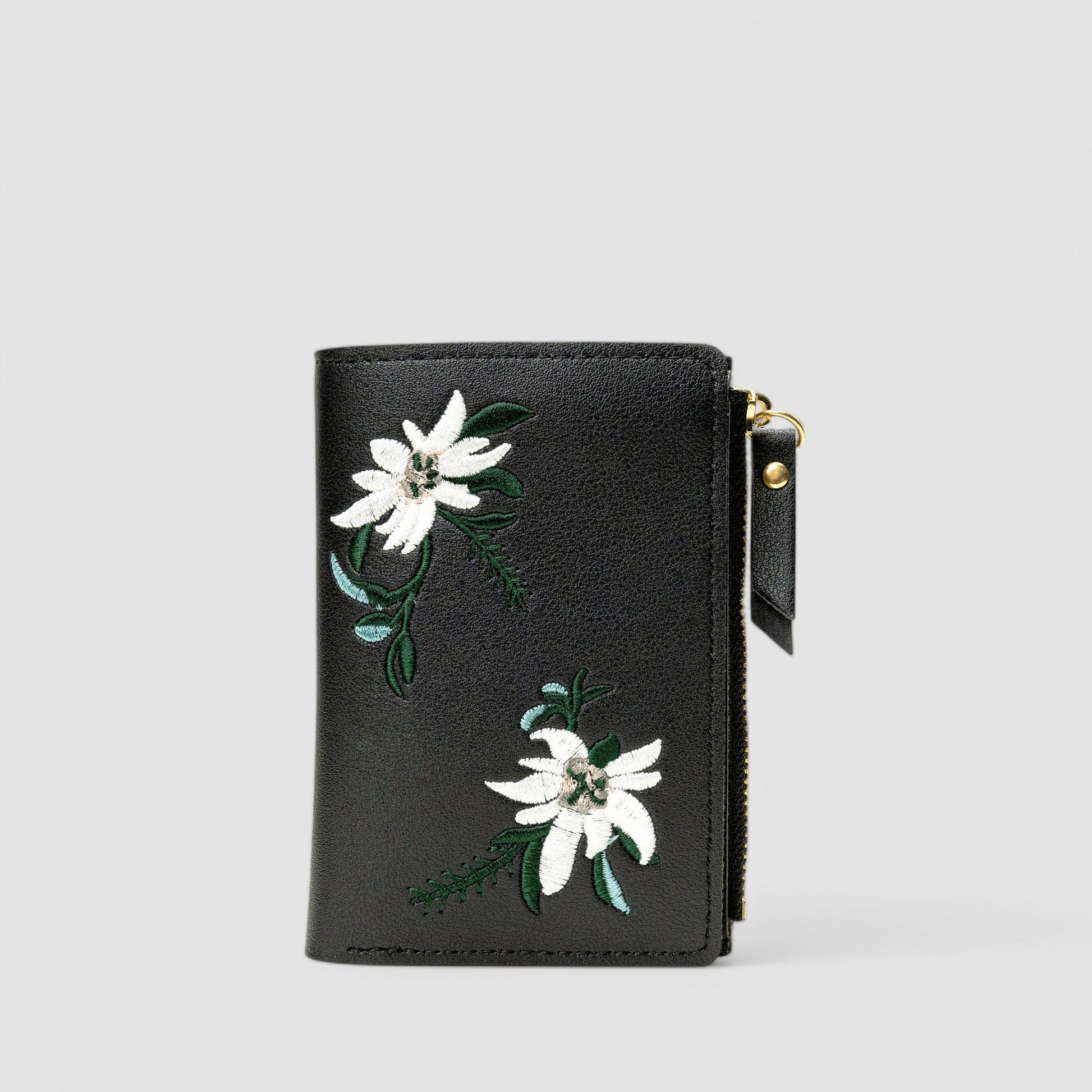 Compact, elegant en praktisch – jouw nieuwe favoriete portemonnee. Deze stijlvolle dames portemonnee combineert elegantie met functionaliteit. Het compacte formaat past moeiteloos in elke handtas, terwijl de slimme indeling zorgt voor overzicht en gemak. De geborduurde details en goudkleurige accenten geven een luxe uitstraling, perfect voor dagelijks gebruik of als verfijnd accessoire bij een avondje uit.