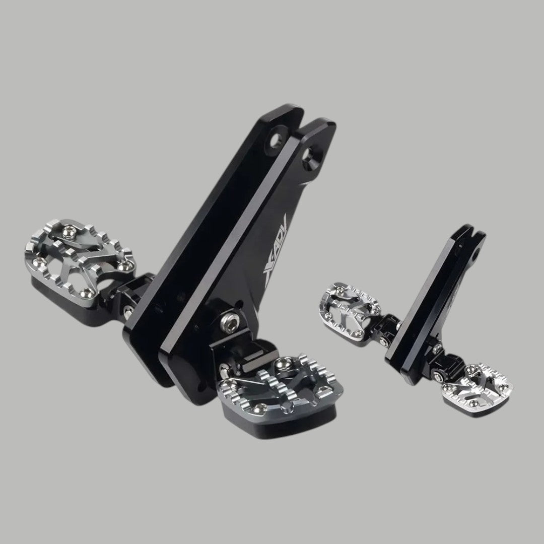Til het comfort en de uitstraling van je X-ADV 750 naar een hoger niveau met deze hoogwaardige voetsteunen, speciaal ontworpen voor modellen van 2021 tot en met 2025. Gemaakt van CNC-gefreesd 6061-T6 aluminium voor maximale stevigheid, stijl en betrouwbaarheid – zelfs onder zware rijomstandigheden.